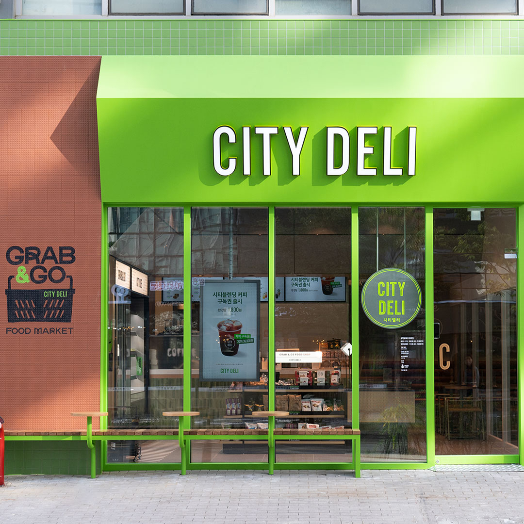 신흥 오피스 상권인 서울 마곡에 위치한 시티델리 3호점은 브랜드 컬러를 담은 그린 타일을 활용해 시티델리 특유의 활기차고 신선한 감성을 담았다. 특히 외부 파사드에는 시티델리 브랜드의 정체성이 들어간 그래픽 아트와 따뜻한 느낌의 목재 가구 등의 내부 인테리어를 통해 도심 속 편안한 공간을 감각적으로 연출했다.